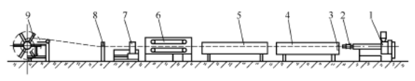 Kuten kuvasta 1 voidaan nähdä, putken suulakepuristuslaitteisto koostuu pääasiassa jäähdytysvesisäiliöstä,nostoyksikkö, leikkuri, kelatai tyhjennyspöytä.