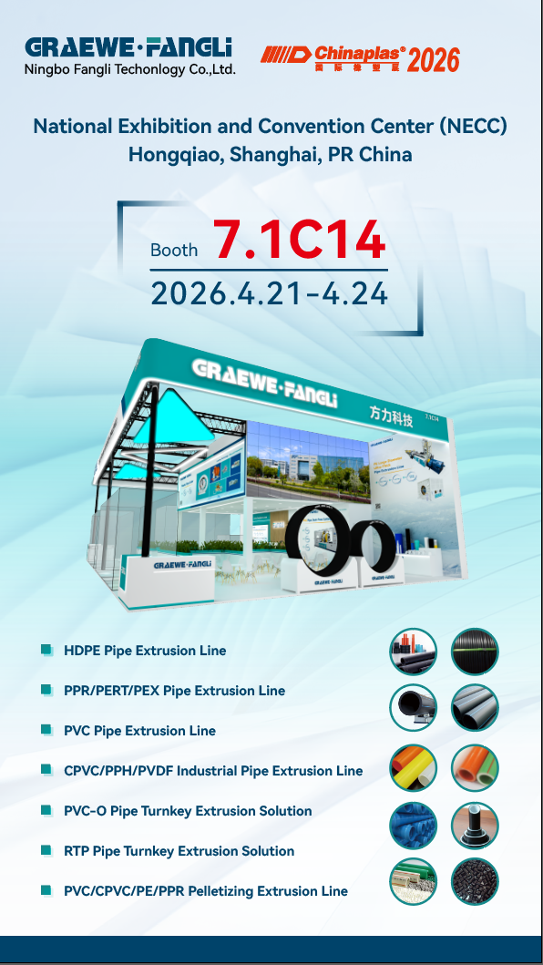 मराठी Tervetuloa osastollemme 7.1C14 ChinaPlas 2026:ssa,Ningbo Fangli Technology Co., Ltd.(jäljempänä "Fangli") on erikoistunut tuotekehitykseen, tuotantoon ja myyntiinmuovin suulakepuristuslaitteet, uusia ympäristönsuojelun tuotantolinjoja, muoviputkien hitsauskoneet ja muoviset apukoneet.